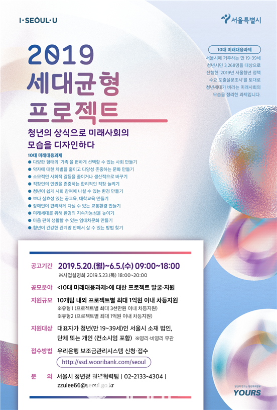 ▲ 서울시 2019년 세대균형 프로젝트 ‘청년의 상식으로 미래사회를 디자인하다’ 참여자 모집. |