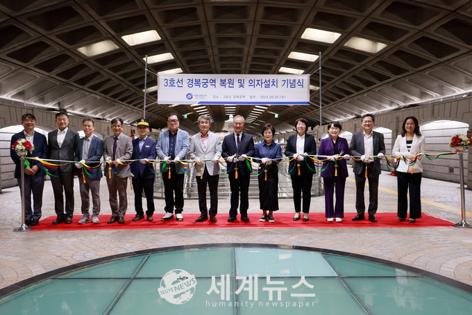 [세계뉴스 차성민 기자] 경복궁역이 1985년 건축 당시 모습으로 돌아왔다. 지난 2월부터 복원 작업에 들어간 지 약 7개월 만이다. 서울교통공사(사장 백호)는 경복궁역 원형 복원 작업을 마치고 25일 경복궁역서 ‘경복궁역 복원 및 의자 설치 기념행사’를 열었다고 밝혔다.
