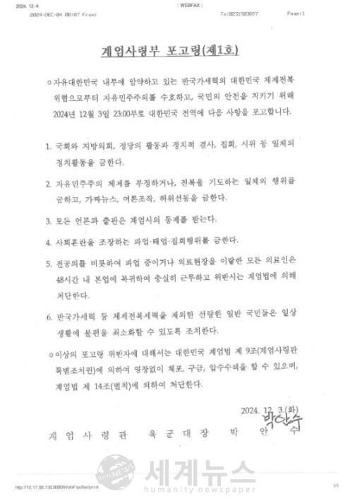 그는 "합참 법무실은 연습 때에도 단어 하나를 두고도 '바꿔야 한다'고 할 정도로 세심한데, 이번 포고령은 그렇지 않았다"며 의문을 제기했다.