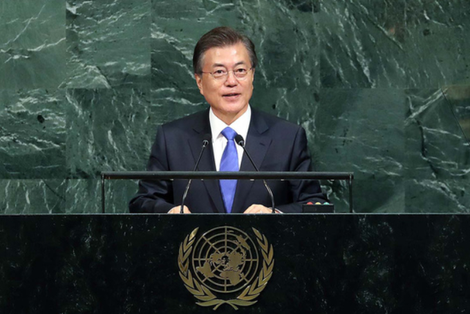 문 대통령은 이날 뉴욕 유엔본부에서 열린 제72차 유엔총회 기조연설을 통해 "도발과 제재가 높아지는 악순환을 멈출 근본 방안을 강구하는 것이야말로 오늘날 유엔에 요구되는 가장 중요한 역할"이라며 이같이 밝혔다.