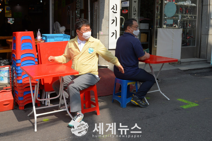 옥외영업을 하게 되는 도로점용 영업구간엔 테이블간 2m 간격으로 위치표시를 해 사회적 거리를 유지할 수 있도록 했다. 아울러 보건소에서는 점포 종사들에게 예방수칙 준수와 자체방역에 대한 교육을 실시하고 각 점포마다 손소독제 비치 확인, 일일체크리스트를 배포하고 작성하는 방법을 안내했다.