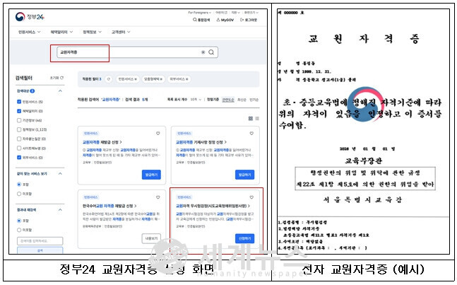 [세계뉴스 = 차성민 기자] 서울특별시교육청은 내년 1월부터 석사학위 연계 무시험검정 교원자격증을 정부24 누리집을 통해 전자 발급한다고 발표했다.