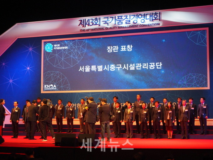 ▲ 산업통상자원부에서 주관한 제43회 국가품질경영대회에서 중구시설관리공단이 '서비스품질 우수부문' 산업통상자원부장관 표창을 수상했다. © 세계뉴스 |