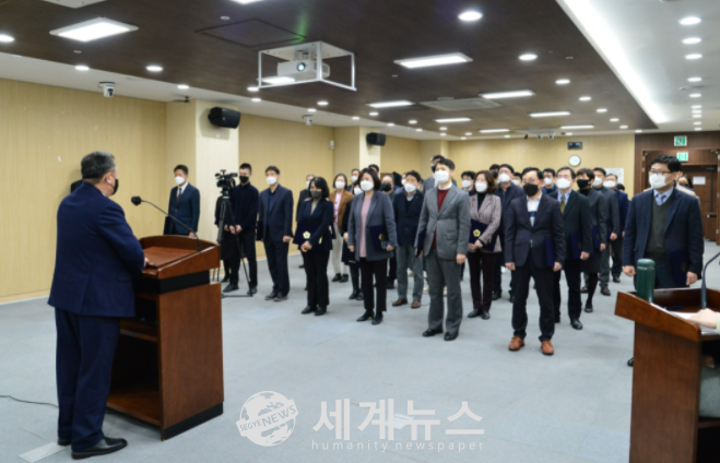 김인호 의장은 “어느 조직에서나 중간관리자는 조직 구성원간의 가교로서 그 역할이 매우 중요하다며, 이전보다 향상된 전문성과 균형감을 가지고 집행부에 대한 건강한 견제와 감시가 계속될 수 있도록 소임에 최선을 다해주기를 바란다”고 말했다.