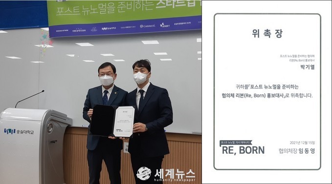 [세계뉴스 정서영 기자] 서울시의회 도시안전건설위원회에서 의정활동을 하고 있는 박기열 의원(더불어민주당, 동작3)은 지난 15일 숭실대학교 전산관에서 포스트 뉴노멀을 준비하는 스타트업 협의체 리본(Re, Born)(이하 리본)의 홍보대사로 위촉됐다.
