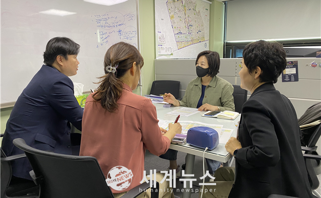 ▲ 지난 17일 김경 의원이 시민건강국 감염병관리과 송은철 과장, 시민건강국 감염병관리과 김연남 팀장 등과 간담회를 열어 노숙인 결핵관리 주거 시설 ‘미소꿈터’ 운영 등을 살펴보고 있다. |