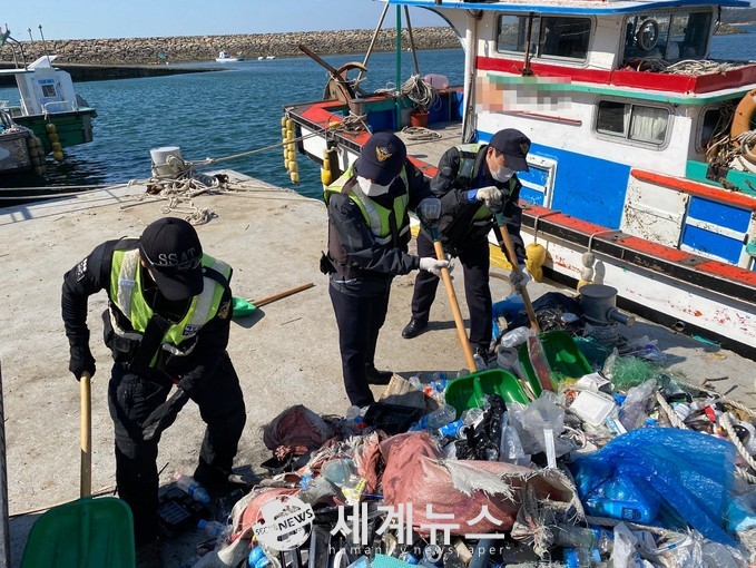 군산해양경찰서는 지난 5일부터 오는 14일까지 10일 간 전북 군산시 새만금 신치항 일원에서 항·포구와 해안가 인근에 무단으로 투기된 해양쓰레기를 수거하는 해양 환경정화활동을 펼치고 있다고 12일 밝혔다.