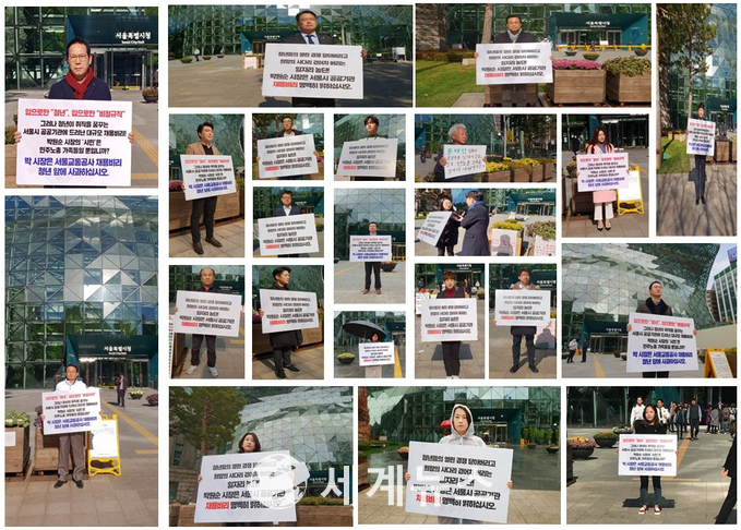 서울시의회 자유한국당은 지난 10월 25일부터 11월 23일까지 30일 간 서울시 신청사 앞에서 ‘시민과 함께하는 서울시 공공기관 채용비리 규탄 릴레이 1인 시위’를 이어왔다. 시위에는 자유한국당 소속 시의원을 포함, 총 24명의 시민들이 자발적으로 참여했다.