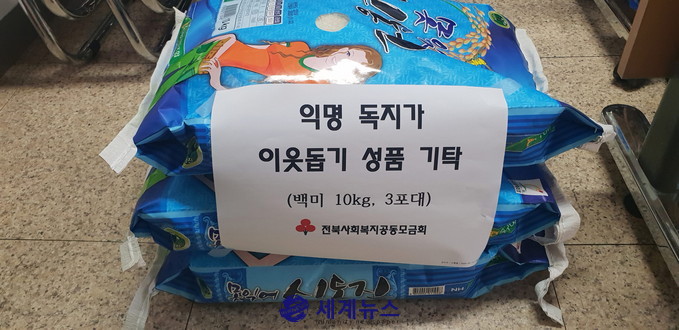 군산시 신풍동은 지난 13일에 익명의 독지가가 어려운 이웃에게 전달해달라며 백미 10kg, 3포대를 기탁했다고 밝혔다.