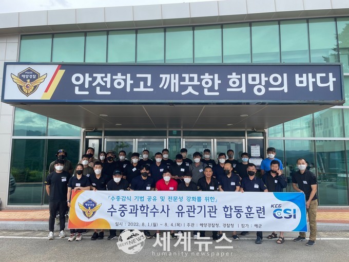 [세계뉴스 윤준필 기자] 해양경찰청은 경찰청과 함께 8월 1일부터 4일까지 4일간 강원 삼척시 소재 동해지방해양경찰청 특공대 및 궁촌항 인근 해상에서 「수중과학수사 유관기관 합동훈련」을 실시한다.