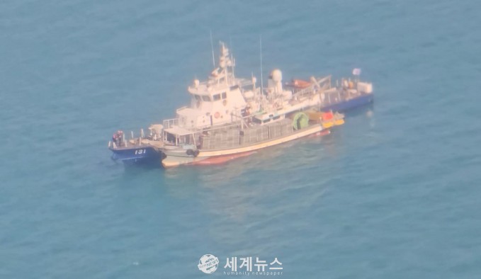 [세계뉴스 윤준필 기자] 서해지방해양경찰청은 여수 금오도 인근해상에서 불법 조업을 하던 9톤급 선망어선 2척을 회전익항공기를 동원한 항공 순찰 중 적발하여 조사하고 있다고 22일 밝혔다.
