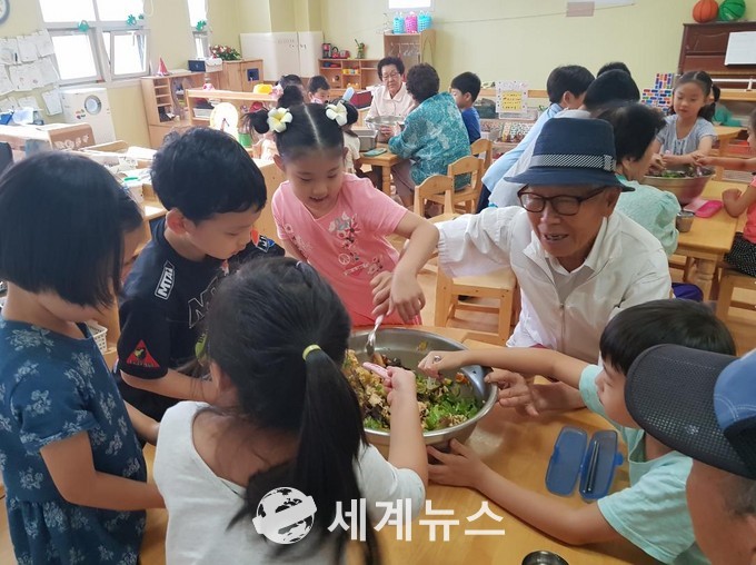 [세계뉴스] 조홍식 기자 = 성동구도시관리공단(이사장 김종수)이 운영하는 용답어린이집은 지역 경로당 어르신들을 초청하여 직접 키운 텃밭에서 수확한 채소로 건강 비빔밥을 만들고 나누어 먹는 시간을 가졌다.