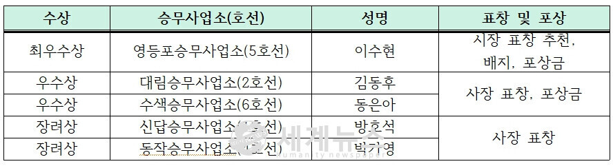 이수현 기관사는 수상 소감으로 "선배님들의 경험을 바탕으로 방송문안을 작성하고, 학습동아리와 함께 연습한 것이 많은 도움이 됐다"며 "평소 승객의 안전을 위해 꾸준히 안내방송을 해온 경험 덕분"이라고 밝혔다.