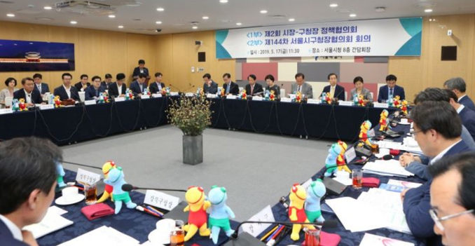 이날 서울시구청장협의회에는 박원순 서울시장, 강태웅 행정1부시장 권한대행과 서정협 기조실장 권한대행, 황인식 행정국장 등 서울시 간부들이 참석했다.