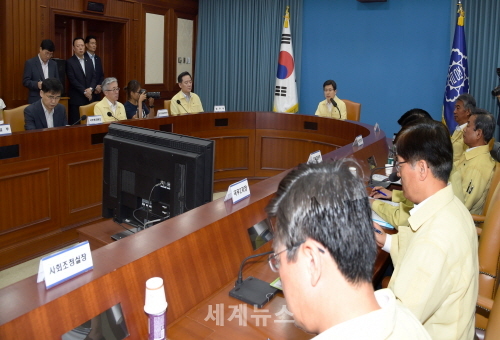 ▲ 28일 황교안 국무총리가 세종로 정부서울청사에서 열린 메르스 대응 범정부 대책회의를 주재, 모두발언을 하고 있다. © 세계뉴스 |