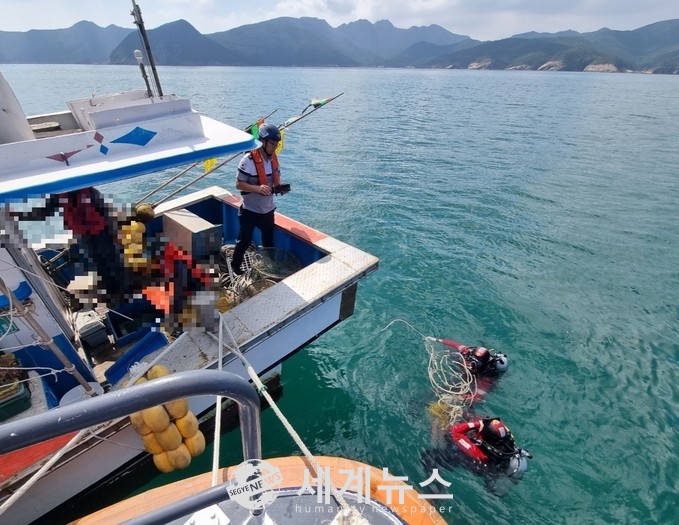 [세계뉴스 윤준필 기자] 해양경찰이 해상순찰 중 선체가 어구에 감긴 운항저해 선박을 발견하고 해상 입수 작업을 통한 긴급 안전조치를 실시했다.