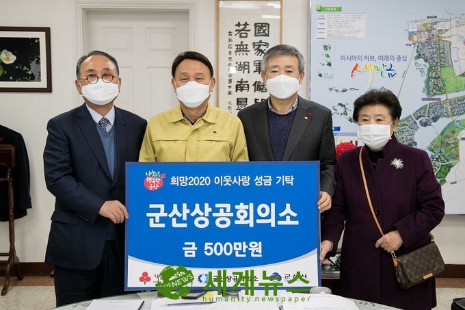 [세계뉴스 윤준필 기자]군산상공회의소(회장 김동수)는 지난달 28일 코로나19 피해민을 위해 써달라며 성금 500만원을 군산시에 전달했다.