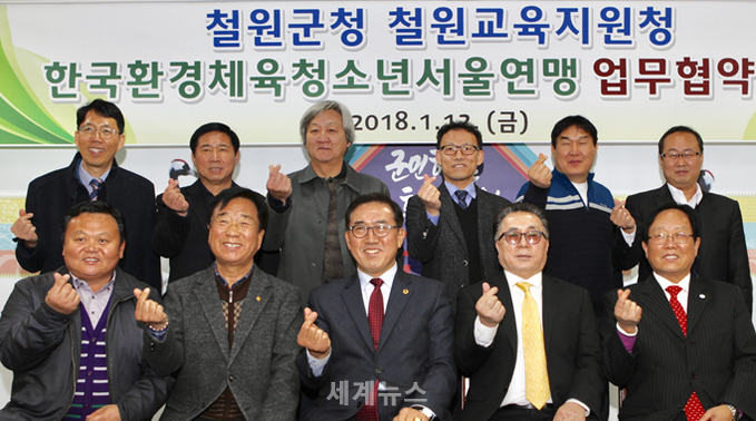[세계뉴스] 전승원 기자 = 강원도 철원군청에서는 서울시의회 교육위원회 송재형 부위원장(자유한국당, 강동2)이 연맹장으로 있는 한국환경체육청소년연맹과 철원군청, 강원도철원교육지원청이 청소년 농촌체험학습 및 환경교육을 위한 업무협약(MOU) 체결식이 지난 12일 열렸다.