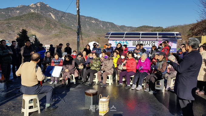 ▲ '고향의 봄'을 부르고 있는 모습. 김광수 서울시의원(국민의당, 노원5)은 6개월간 지역 의정활동을 통해 기적을 이룬 희망마을과 별빛마을 소개하는 '동네 숲 가꾸기' 준공식을 지난 19일 가졌다. © 세계뉴스 |