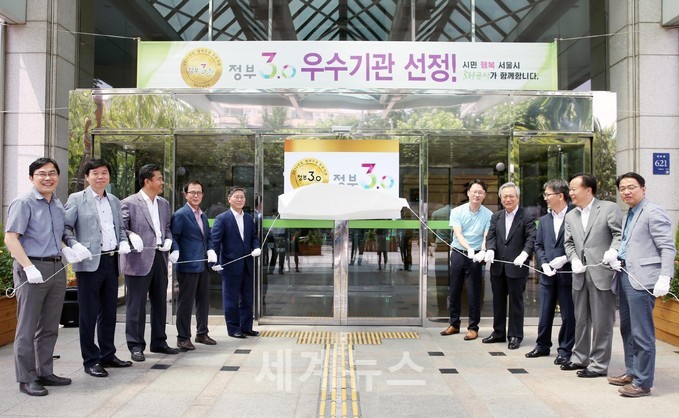 ▲ 26일 서울시 SH공사는 강남구 본사에서 '2015년 정부3.0 우수기관'으로 선정돼 이날 인증 현판식을 가졌다. © 세계뉴스 |