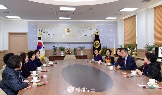 이날 미화실을 직접 찾은 신원철 의장은 “추운 날씨에도 땀을 흘리며 청사 내·외부 미화를 위해 힘써주시는 여러분 모습을 볼 때마다 감사했다.”라고 고마운 마음을 전하고, 15명의 청소 노동자들을 접견실로 초대해 차담을 나눈 뒤 오찬을 함께 했다.
