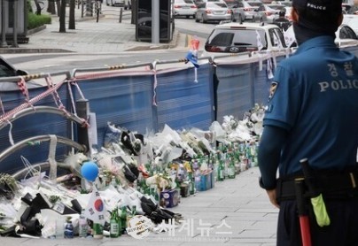 ▲ 시청역 사고에 시민들이 조의의 꽃다발을 놓은 사고 현장. |