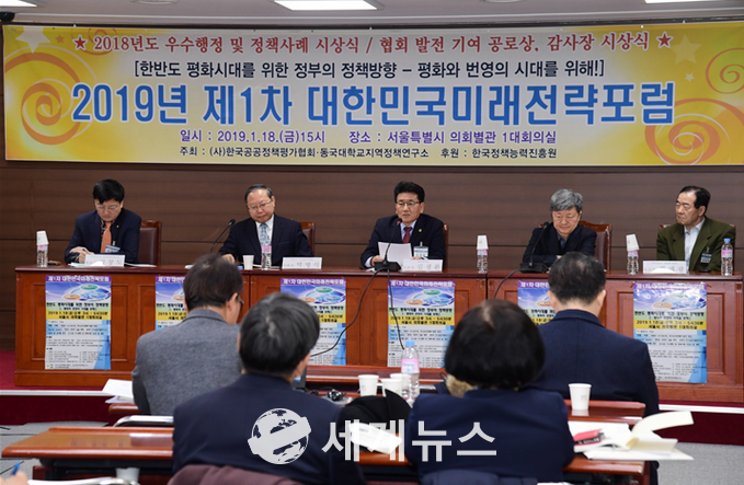 지난 18일 오후3시 서울시의회별관 제1대회의실에서 사단법인 한국공공정책평가협회와 동국대지역정책연구소가 주최하고 한국정책능력진흥원의 후원으로 ‘2019년 제1차 대한민국미래전략포럼’ 정책토론회가 개최되었다.