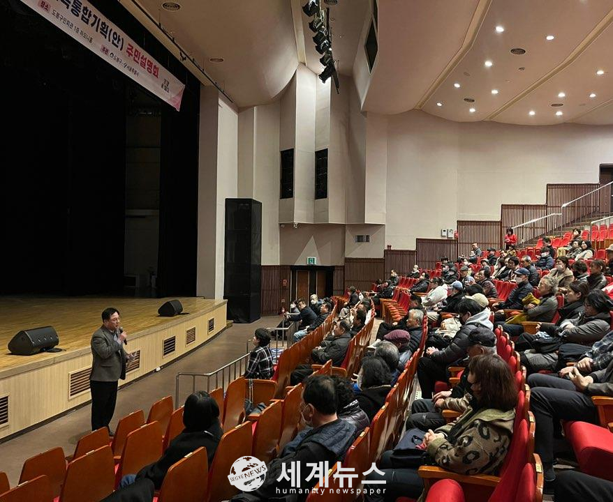 [세계뉴스 = 전승원 기자] 서울특별시의회 박석 의원(도봉 제3선거구)이 도봉구민회관에서 열린 '쌍문동 81번지 일대 주택정비형 재개발 신속통합기획안 주민설명회'에 참석해 재개발 사업의 구체적인 계획을 발표했다.