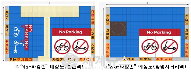 [세계뉴스 = 조홍식 기자] 서울교통공사는 광명시청과 협력하여 지하철 7호선 철산역과 광명사거리역 출입구 인근에 'No-파킹존'을 조성한다고 발표했다. 이는 전동킥보드와 자전거 등 개인형 이동장치의 무분별한 주차로 인한 보행자 안전 문제를 해결하기 위한 조치다.