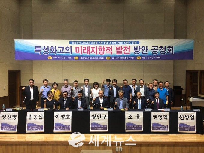 [세계뉴스] 정서영 기자 = 서울시의회 교육위원회 황인구 부위원장(강동4, 더불어민주당)이 지난 26일 오후 2시 성동공업고등학교 류덕희홀에서 서울시 상·공업계열 고등학교 교장회의 주관으로 ‘특성화고 미래지향적 발전 방안을 위한 공청회’를 개최했다.