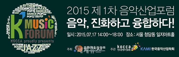 문화체육관광부(장관 김종덕)는 한국콘텐츠진흥원(KOCCA·원장 송성각)·한국음악산업학회(회장 구문모) 주관으로 ‘2015 제1차 K-뮤직포럼’을 오는 17일 서울 강남구 일지아트홀에서 개최한다.