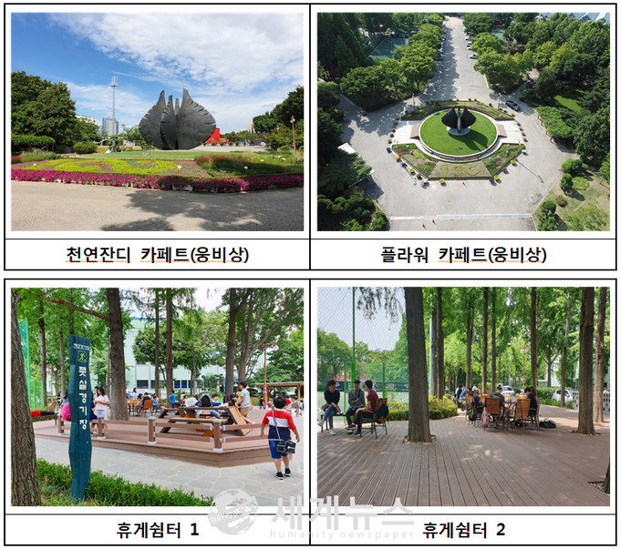 핵심적으로 제1수영장, 보조경기장, 조형물인 웅비상 주변엔 약 3천㎡ 규모의 천연잔디를 심어 ‘녹색쉼터’로 조성했다. 특히 제1수영장과 보조경기장 주변엔 30년 이상된 대형 수목이 많아 이번에 조성한 천연잔디와 어우러져 도심 한복판에 더위를 피하고 편안하게 쉴 수 있는 명소가 될 것으로 기대된다.