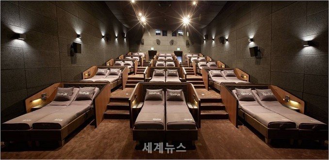 CGV는 22일 세계 최초 리클라이닝 침대 극장 ‘템퍼 시네마’를 CGV씨네드쉐프 압구정과 CGV씨네드쉐프 부산센텀시티에 그랜드 오픈한다고 밝혔다. 글로벌 프리미엄 매트리스&베개 브랜드 템퍼와의 콜라보레이션을 통해 극장 전 좌석에 리클라이닝 침대를 도입한다.