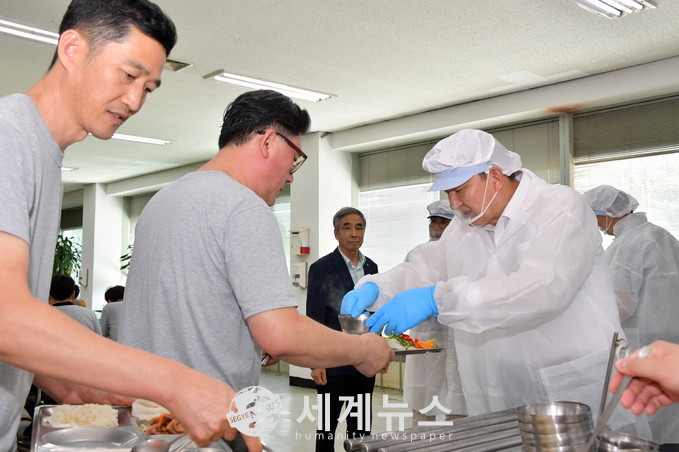 이번 배식 봉사는 소통 행정을 중시하는 이병노 군수의 군정 방침에 따라 마련됐으며, 이어진 오찬 자리에서는 근로자들의 노고를 위로하고 기업체의 애로사항을 청취했다.