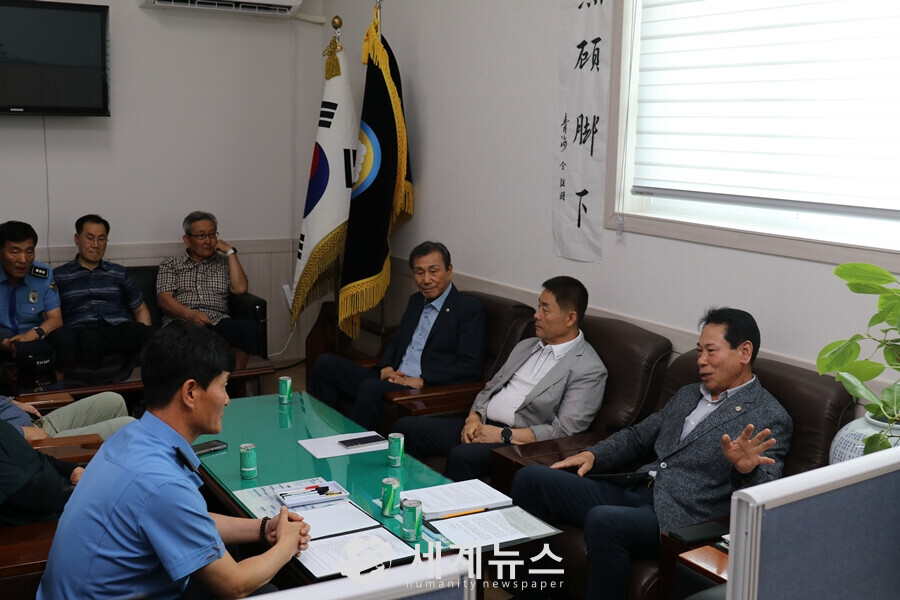 [세계뉴스 = 윤준필 기자] 오훈 제33대 군산해양경찰서장이 취임 후 첫 일정으로 군산해양경찰재향경우회를 방문하며 따뜻한 소통의 시간을 가졌다. 지난 7월 1일자로 서장직을 맡은 그는 바쁜 일정 속에서도 퇴직한 경우들과의 만남을 우선시하며 조직의 역사를 존중하고 미래를 위한 비전을 제시했다.