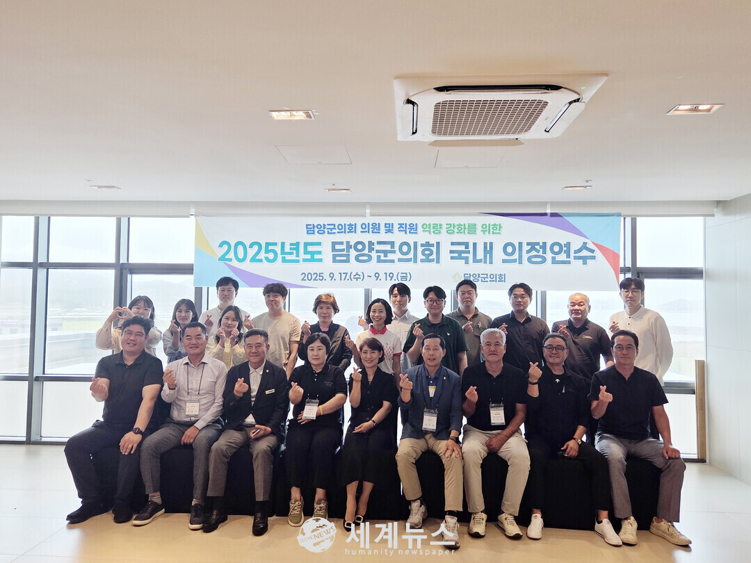 [세계뉴스 = 양경희 기자] 담양군의회가 지난 17일부터 19일까지 전남 신안군에서 '2025년도 담양군의회 국내 의정연수'를 실시했다. 이번 연수에는 장명영 의장을 포함한 의원들과 의회사무과 직원 등 총 24명이 참여했다.
