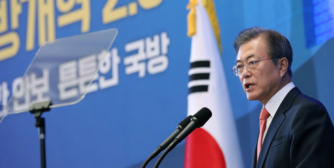 ▲ 문재인 대통령이 ‘국방개혁 2.0’ 보고대회가 열린 27일 전군주요지휘관 회의에 참석해 모두발언을 하고 있다. (사진=청와대 제공) |