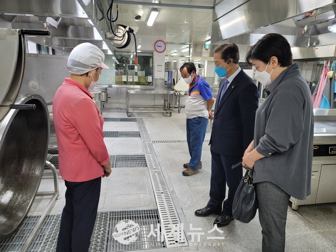 김 의원은 올해 시설 개선이 이뤄진 급식실 및 학생식당 시설 전반을 살펴보며 학교 급식 환경 전반과 등교수업 확대에 따른 코로나19 방역 상황을 점검하고 의견을 청취했다.