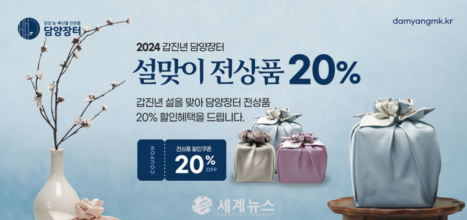 [세계뉴스 양경희 기자] 담양군(군수 이병노)은 다가오는 민족 대명절인 설을 맞아 오는 2월 16일까지 지역 농특산물 전문 판매장 ‘담양장터’에서 특별 할인행사를 진행한다고 밝혔다.