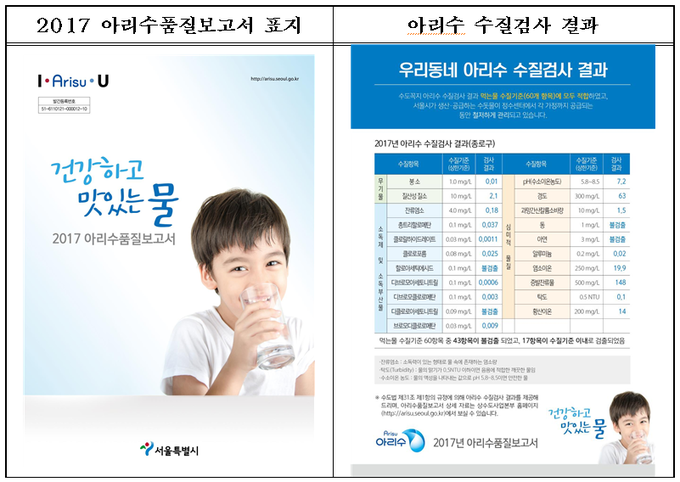 한편 서울시는 아리수품질보고서를 통해 시민 참여가 가능한 다양한 수돗물 관련 정책 및 정보를 제공하며, 자세한 내용은 서울시 상수도사업본부 홈페이지(http://arisu.seoul.go.kr)에서 확인해 볼 수 있다.