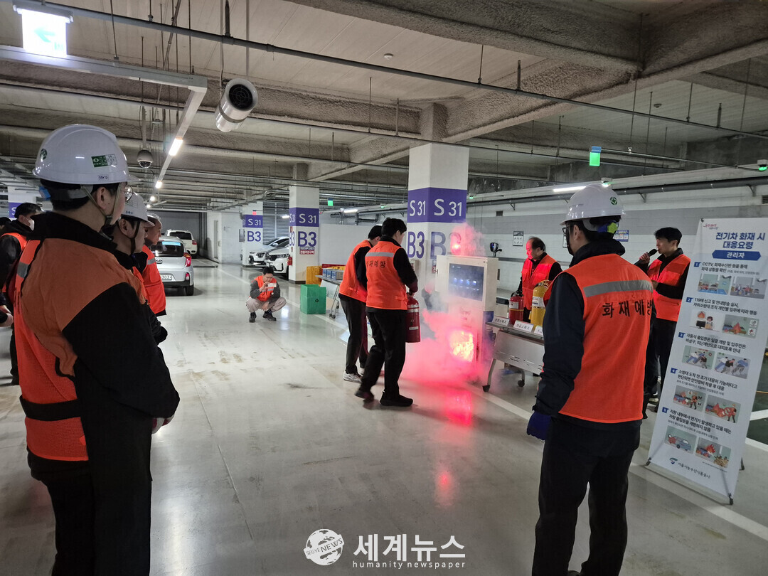 이번 훈련은 전기차 충전소 시설이 다수 위치한 가락몰 지하 주차장에서 진행됐으며, 공사와 자회사, 유통인 등 40여 명이 참여했다.