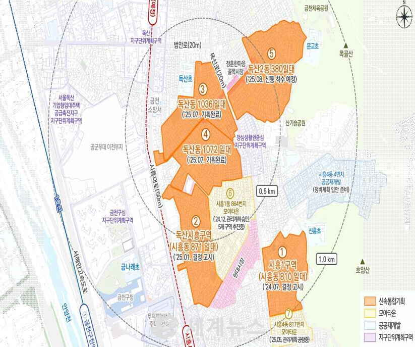 서울시는 이날 독산동 1036·1072 일대 16.9만㎡에 이르는 두 개 구역의 신속통합기획을 최종 확정·통보했다. 이는 기존 시흥동 810, 871 등을 포함하여 총 44만㎡ 규모의 대규모 주거정비를 단계적으로 추진하여 금천구 전반의 도시 경쟁력을 높이겠다는 계획이다.