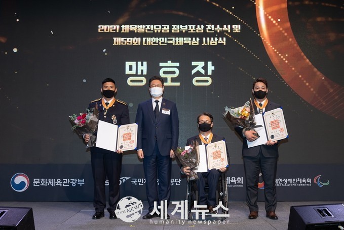 ▲ 김태균 순경이 지난 15일2021 체육발전 유공자 포상 전수식 및 제59회 대한민국체육상에서 체육 발전에 기여한 공로를 인정 |