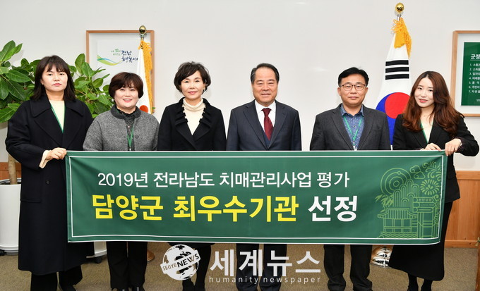 [세계뉴스 한차수 기자] 담양군(군수 최형식)이 전라남도에서 실시한 2019 전라남도 치매안심센터사업 평가에서 최우수기관으로 선정돼 16일 순천시 에코그라드 호텔에서 열린 치매관리사업 발전대회 행사에서 포상금과 도지사 표창을 수상했다.