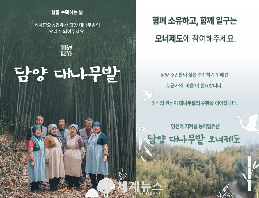 [세계뉴스 = 양경희 기자] 담양군이 세계중요농업유산(GIAHS)이자 제4호 국가중요농업유산인 ‘담양 대나무밭’을 지키기 위한 프로젝트의 일환으로, ‘담양 대나무밭 크라우드 펀딩’을 시작한다.