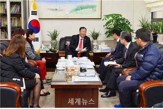 ▲ 김인호 부의장과 시교육청 직원들과 간담회 모습. 서울시의회 김인호 부의장은 서울시교육청과 협의를 거쳐 2016학년도부터 동대문구 관내 중학교인 전일중학교에 체조 운동부를 신설하기로 했다. © 세계뉴스 |