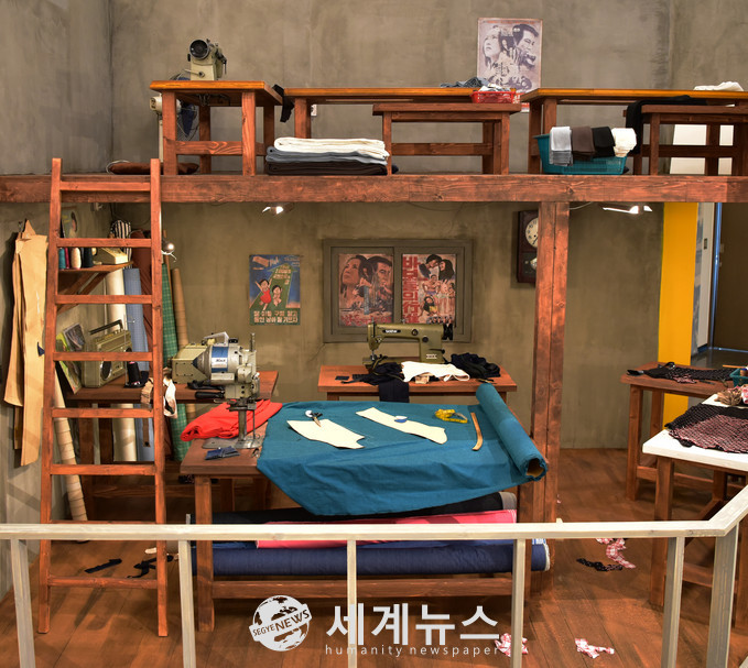 특히 ‘그 시절의 평화시장’에서는 봉제공장을 실제 평화시장 출신 노동자의 증언과 사진 자료를 통해 생생하게 재현했다. 당시 공장의 대표적인 구조물인 다락을 설치하였고, 실제 크기 공장 사람들 모형을 통해 실감나는 전시 감상이 가능하다.