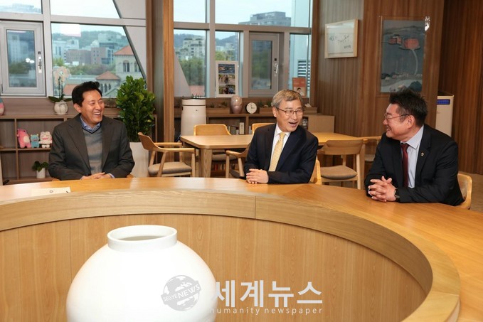 [세계뉴스 탁병훈 기자] 29일 오후 3시 정근식 교육감이 서울시청을 찾아 오세훈 서울시장과 상견례를 가졌다.