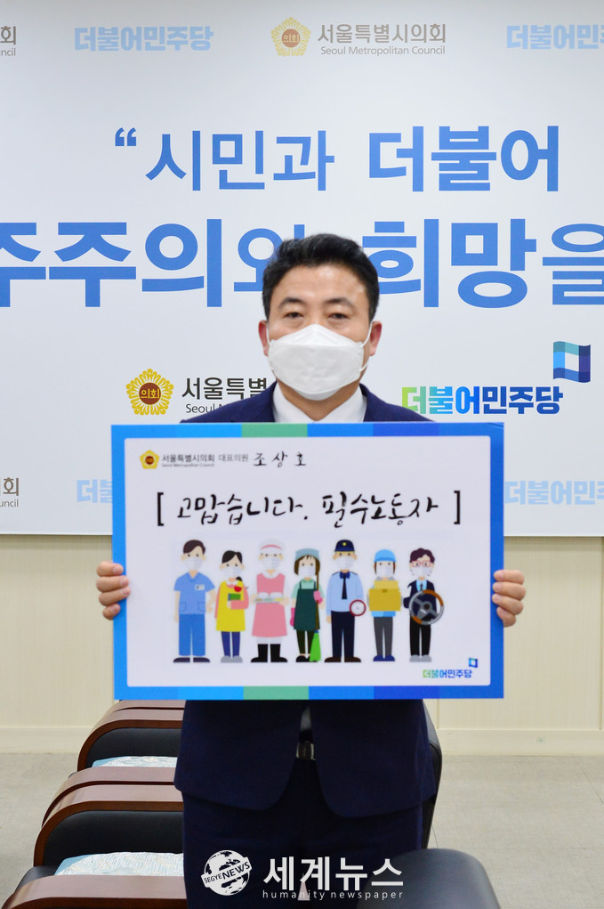 [세계뉴스 윤소라 기자] 서울시의회 조상호 의원(더불어민주당 대표의원, 서대문4)은 17일 ‘고맙습니다. 필수노동자’ 캠페인에 행렬에 동참했다.