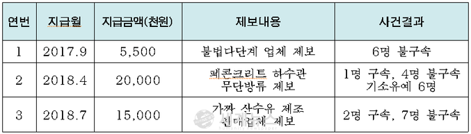 민생범죄 공익제보 포상금 제도를 도입한 '17년부터 현재까지 3건에 대해 3명에게 총 40,500천원의 포상금을 지급한 바 있다.